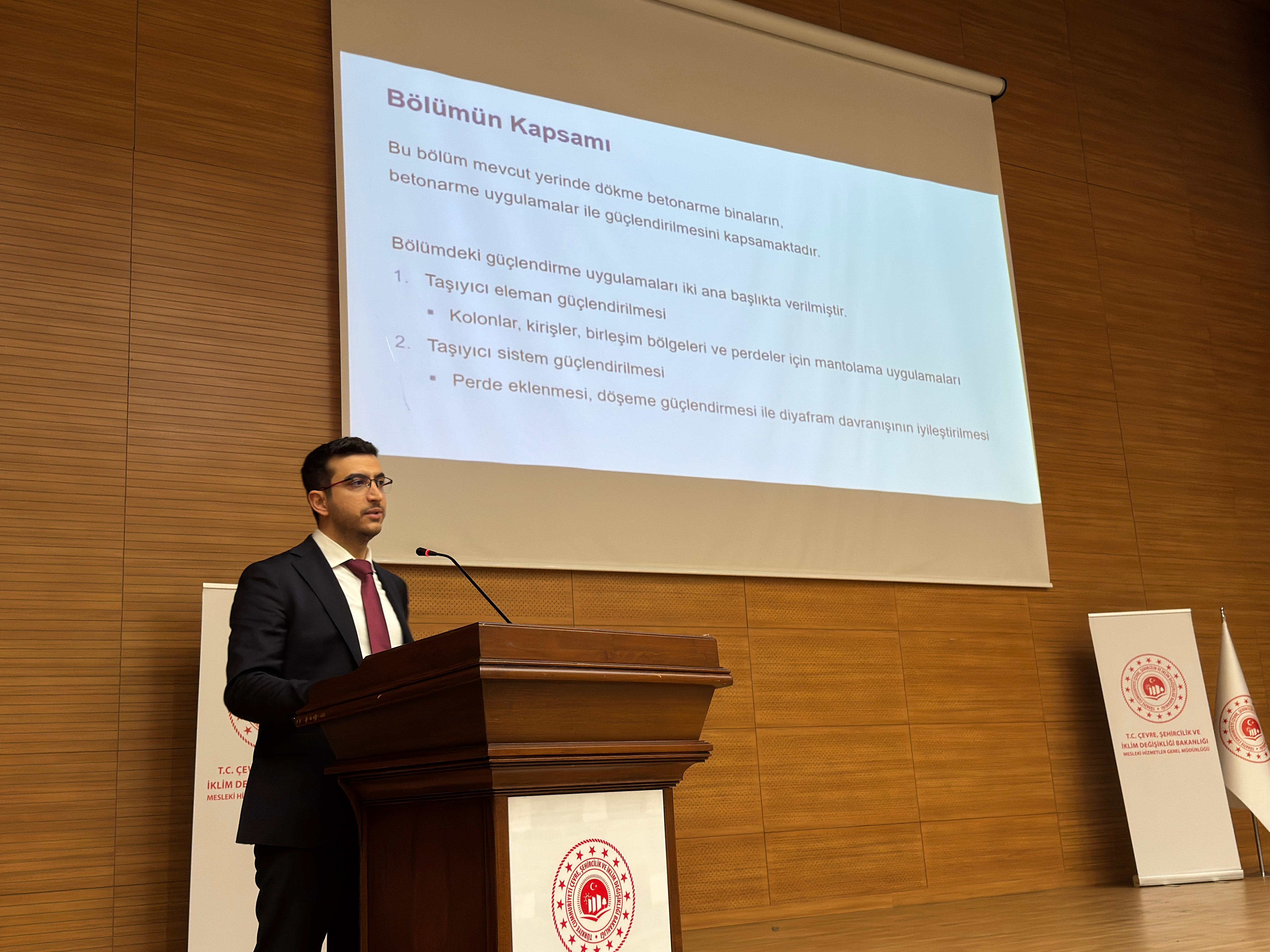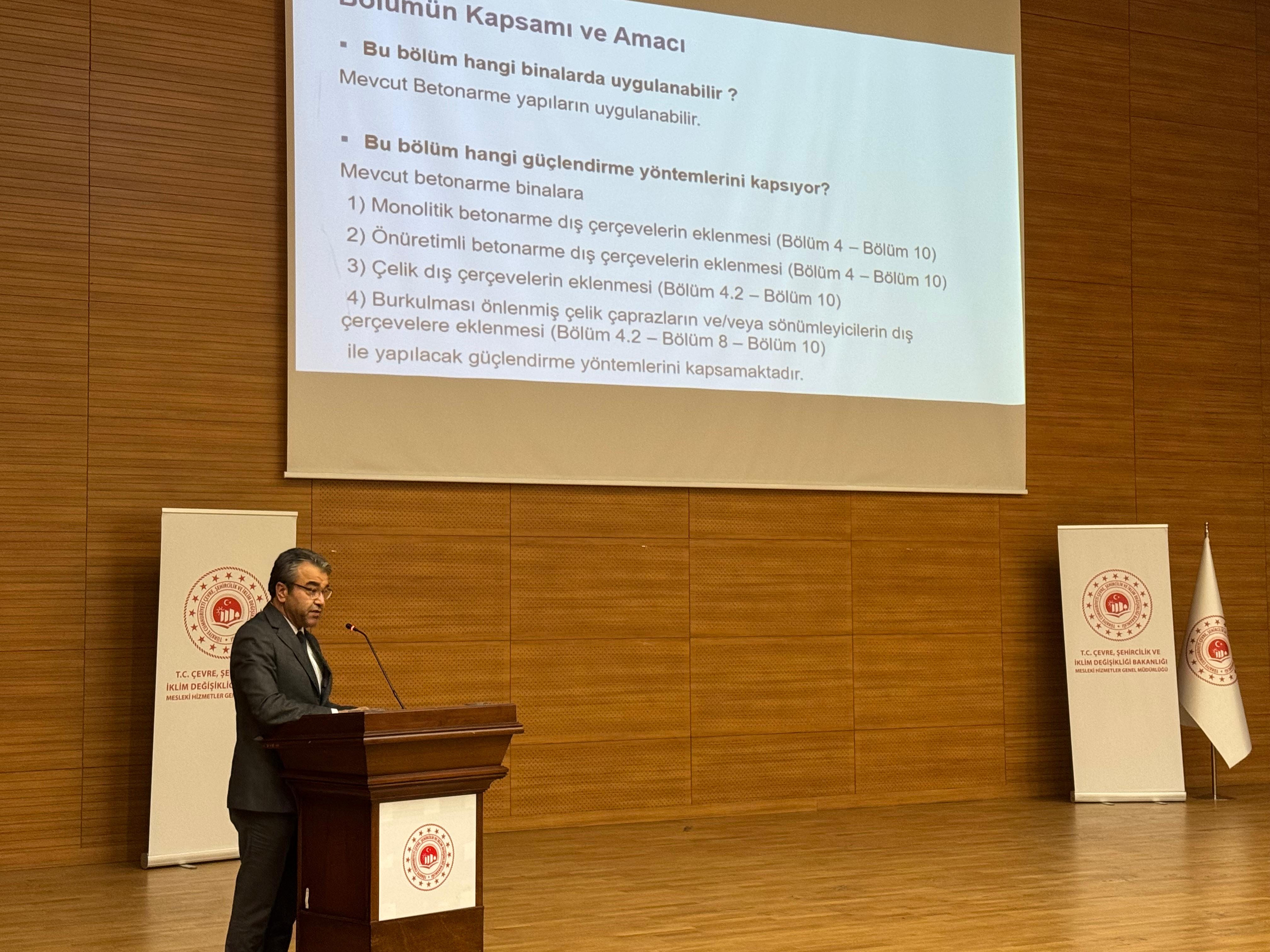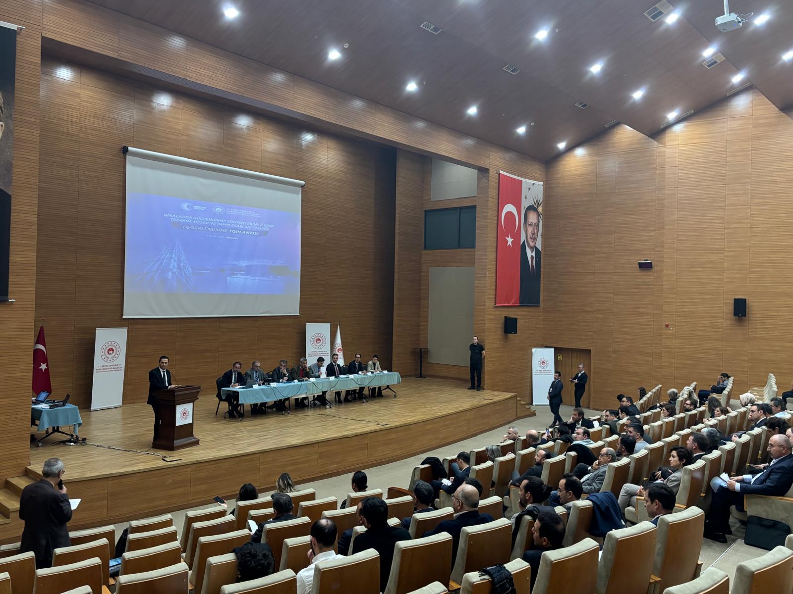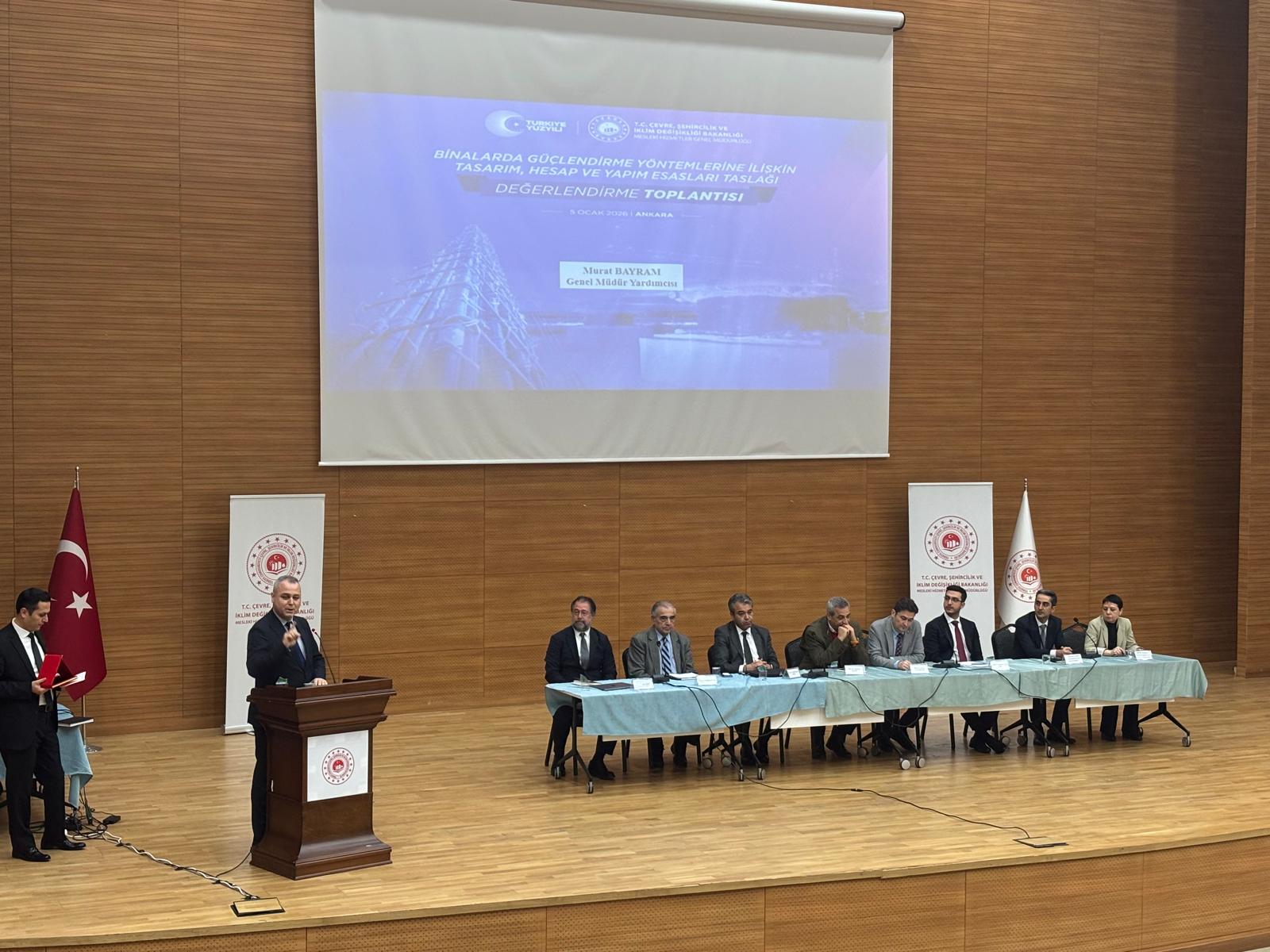 5 Ocak 2026 tarihinde kamu kurumları ve sektör temsilcileri ile akademisyenlerin katılımıyla ‘Binalarda Güçlendirme Yöntemlerine İlişkin Tasarım, Hesap ve Yapım Esasları Taslağı Değerlendirme Toplantısı’ düzenledik. Üç ayrı oturumda gerçekleştirilen toplantıda, 11 akademisyen 12 farklı başlıkta sunum yaptı. Sunumların ardından 2 saat süren oturumda katılımcıların soruları cevaplandı ve önerileri değerlendirildi.