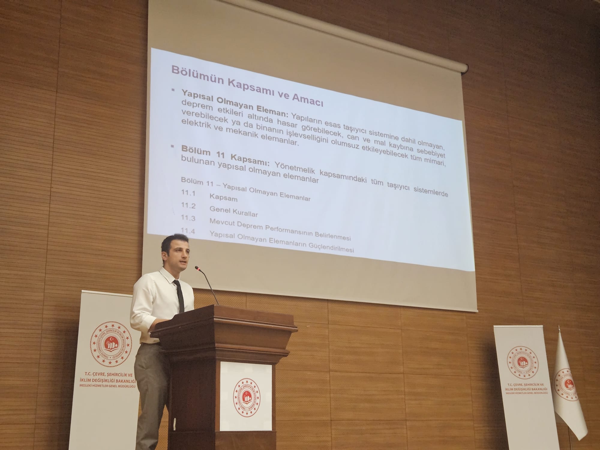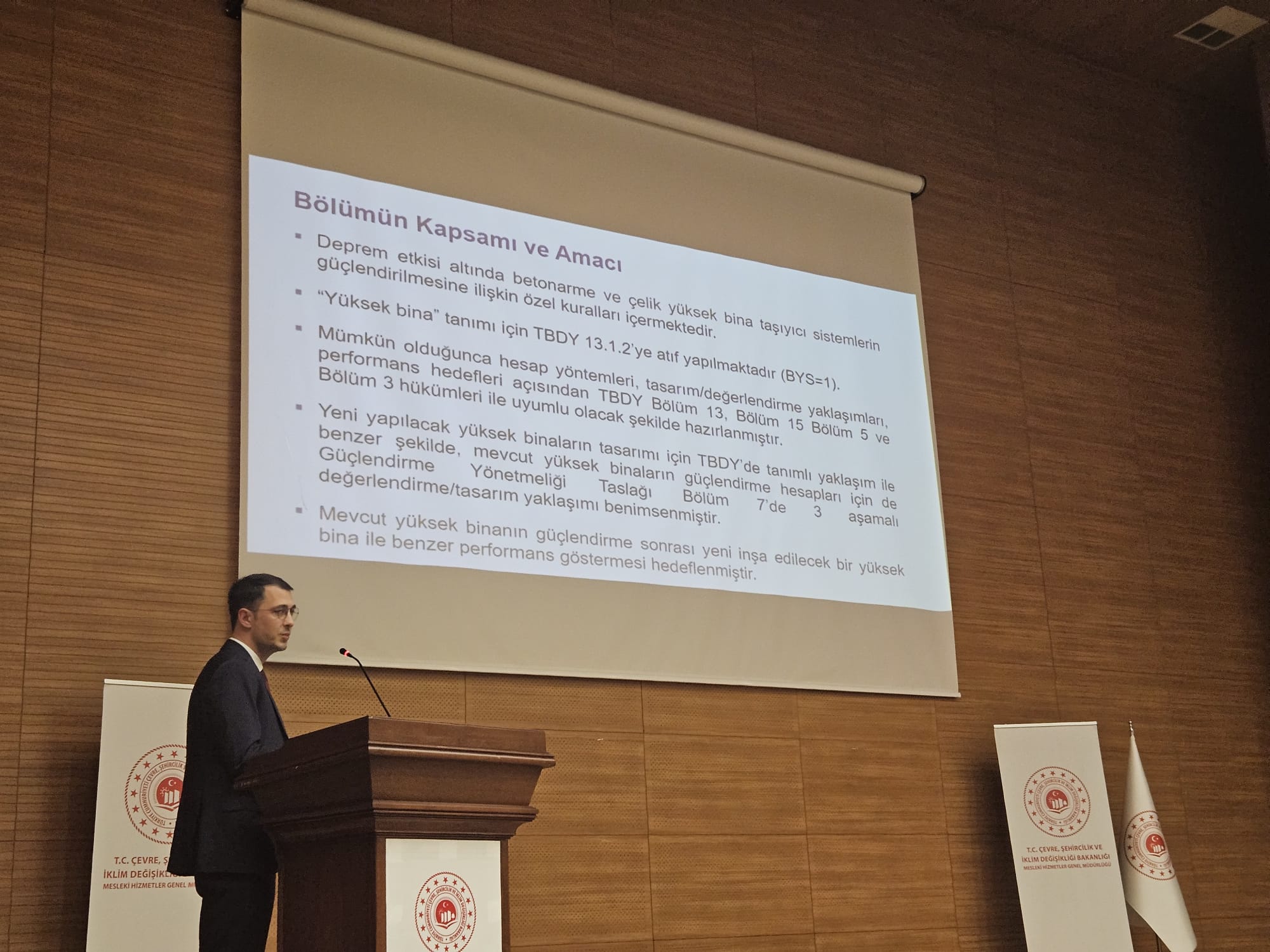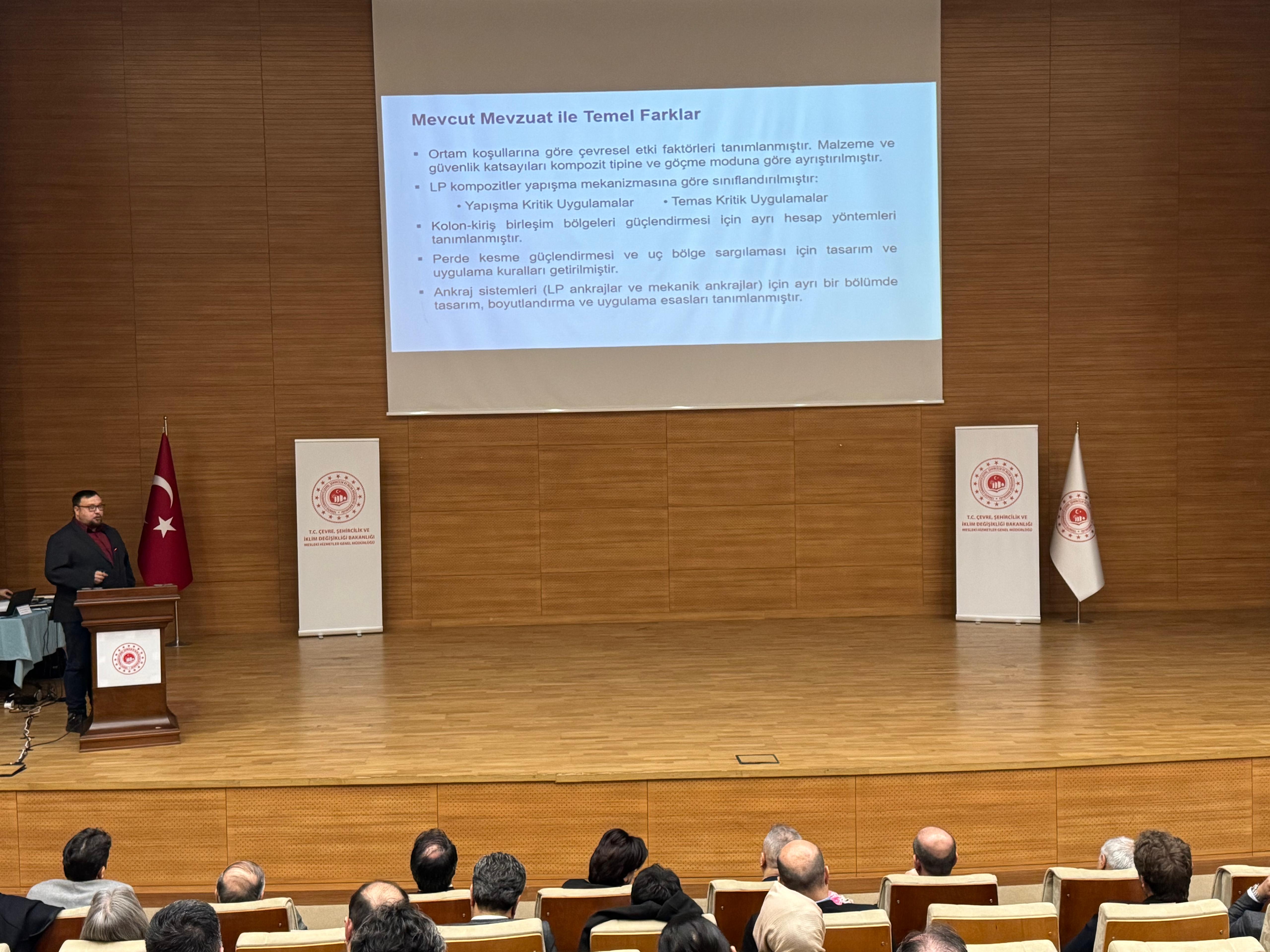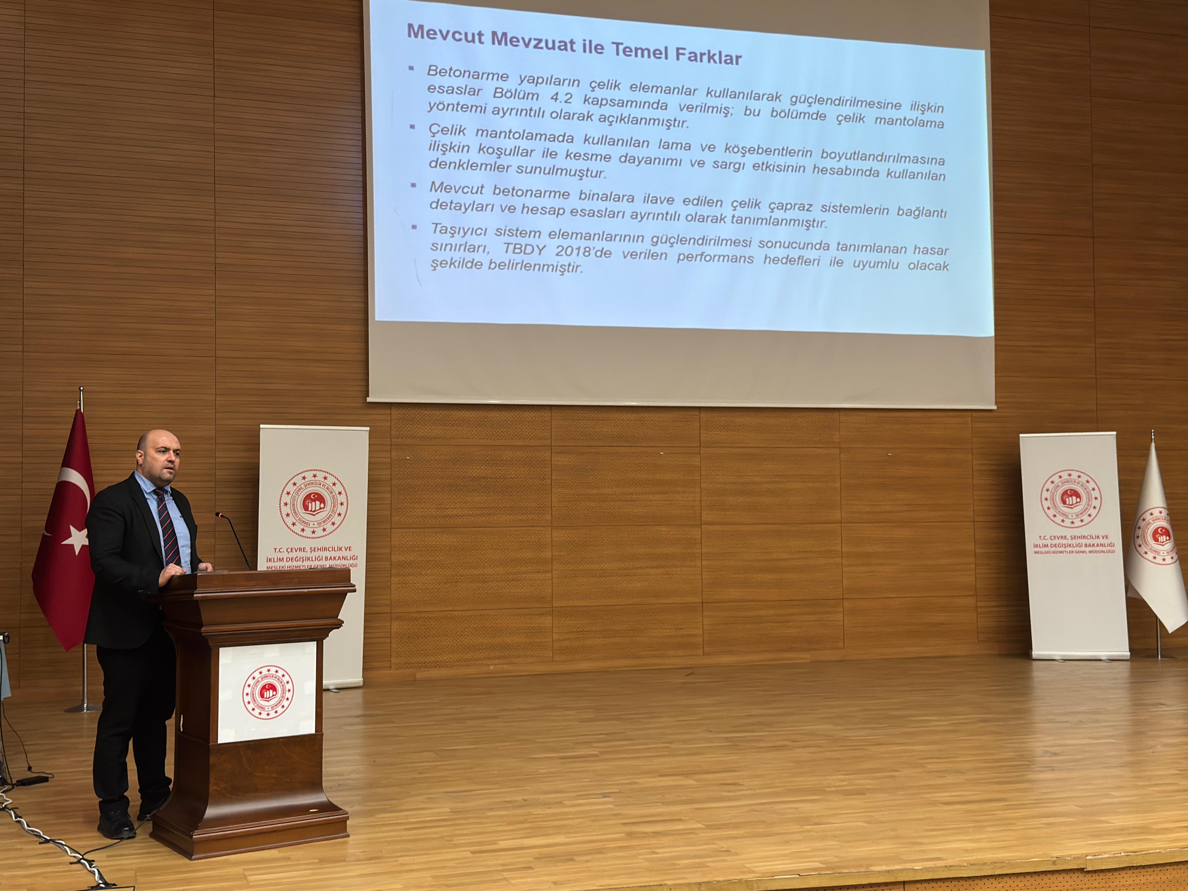 5 Ocak 2026 tarihinde kamu kurumları ve sektör temsilcileri ile akademisyenlerin katılımıyla ‘Binalarda Güçlendirme Yöntemlerine İlişkin Tasarım, Hesap ve Yapım Esasları Taslağı Değerlendirme Toplantısı’ düzenledik. Üç ayrı oturumda gerçekleştirilen toplantıda, 11 akademisyen 12 farklı başlıkta sunum yaptı. Sunumların ardından 2 saat süren oturumda katılımcıların soruları cevaplandı ve önerileri değerlendirildi.