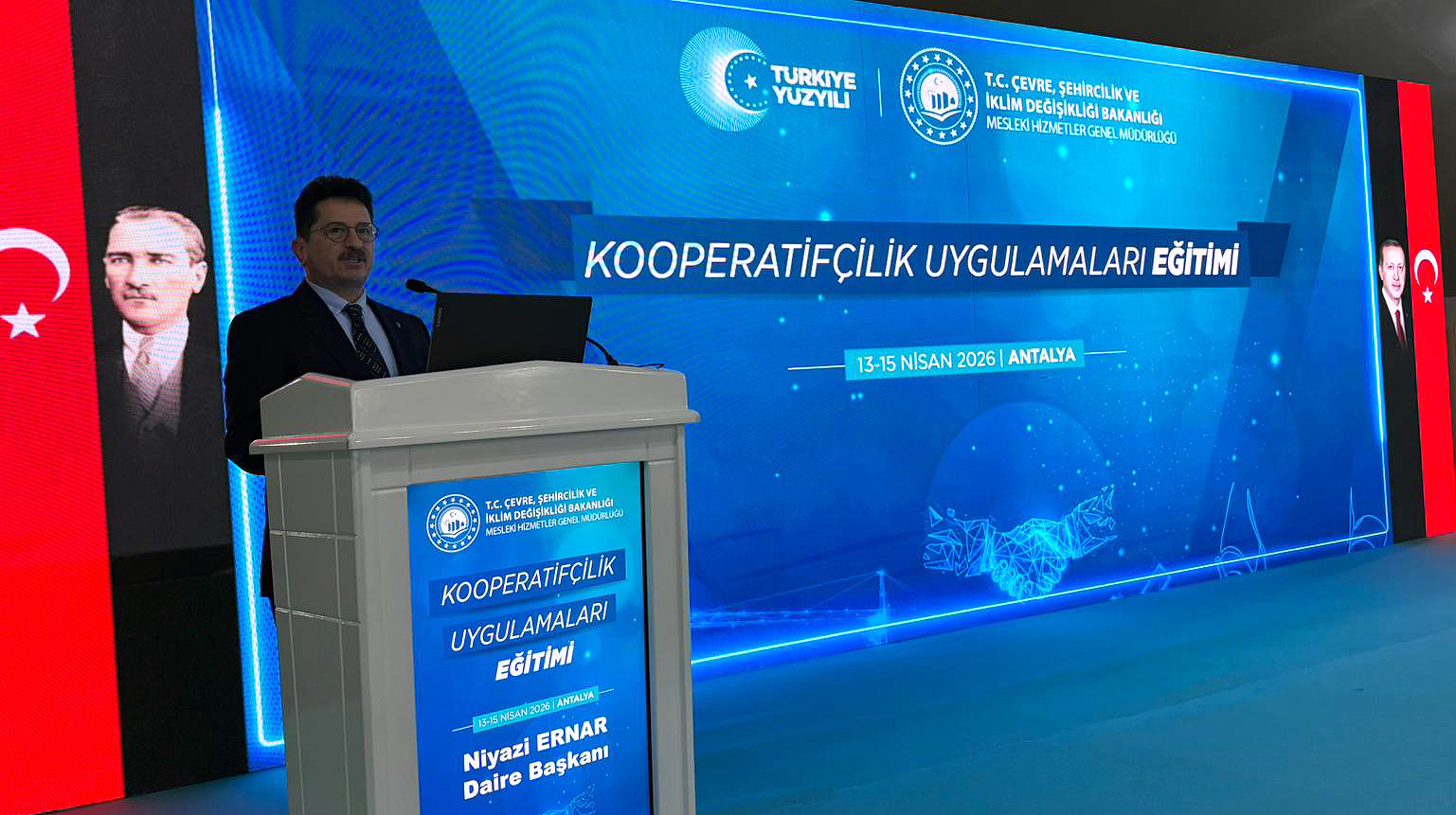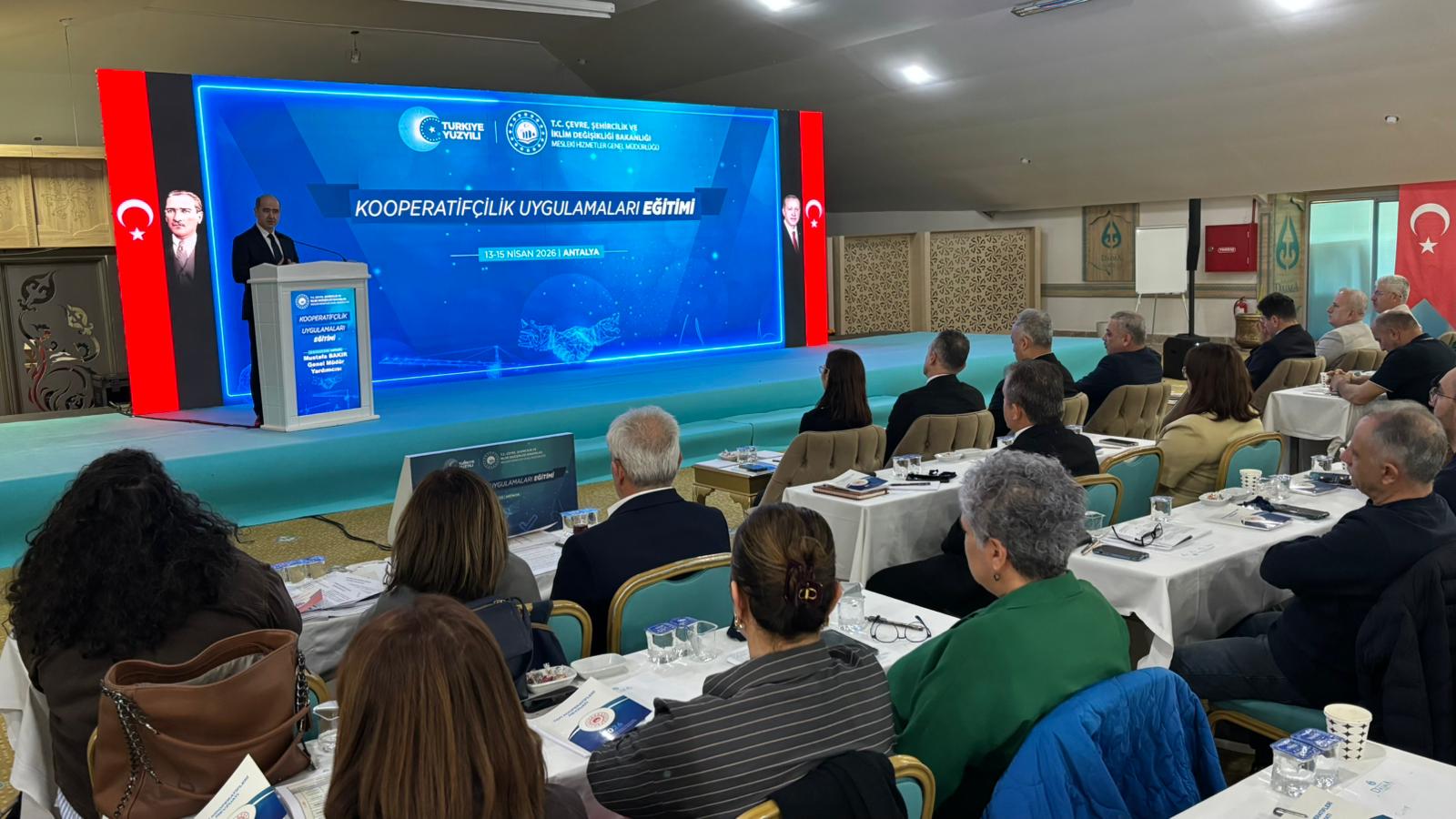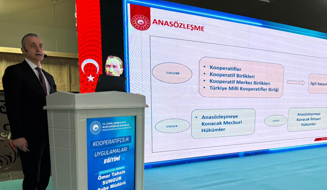 13-15 Nisan 2026 tarihleri arasında Antalya'da gerçekleştirilen eğitim programı, Genel Müdür Yardımcımız Mustafa Bakır ve Daire Başkanımız Niyazi Ernar’ın açılış konuşmalarıyla başladı. 81 İl Müdürlüğünden toplam 300 personelin katılımıyla gerçekleştirilen programda, Bakanlığımız uzmanları tarafından 7339 sayılı Kanun ile güncellenen kooperatifçilik uygulamalarına ilişkin kapsamlı bilgilendirmeler yapıldı.