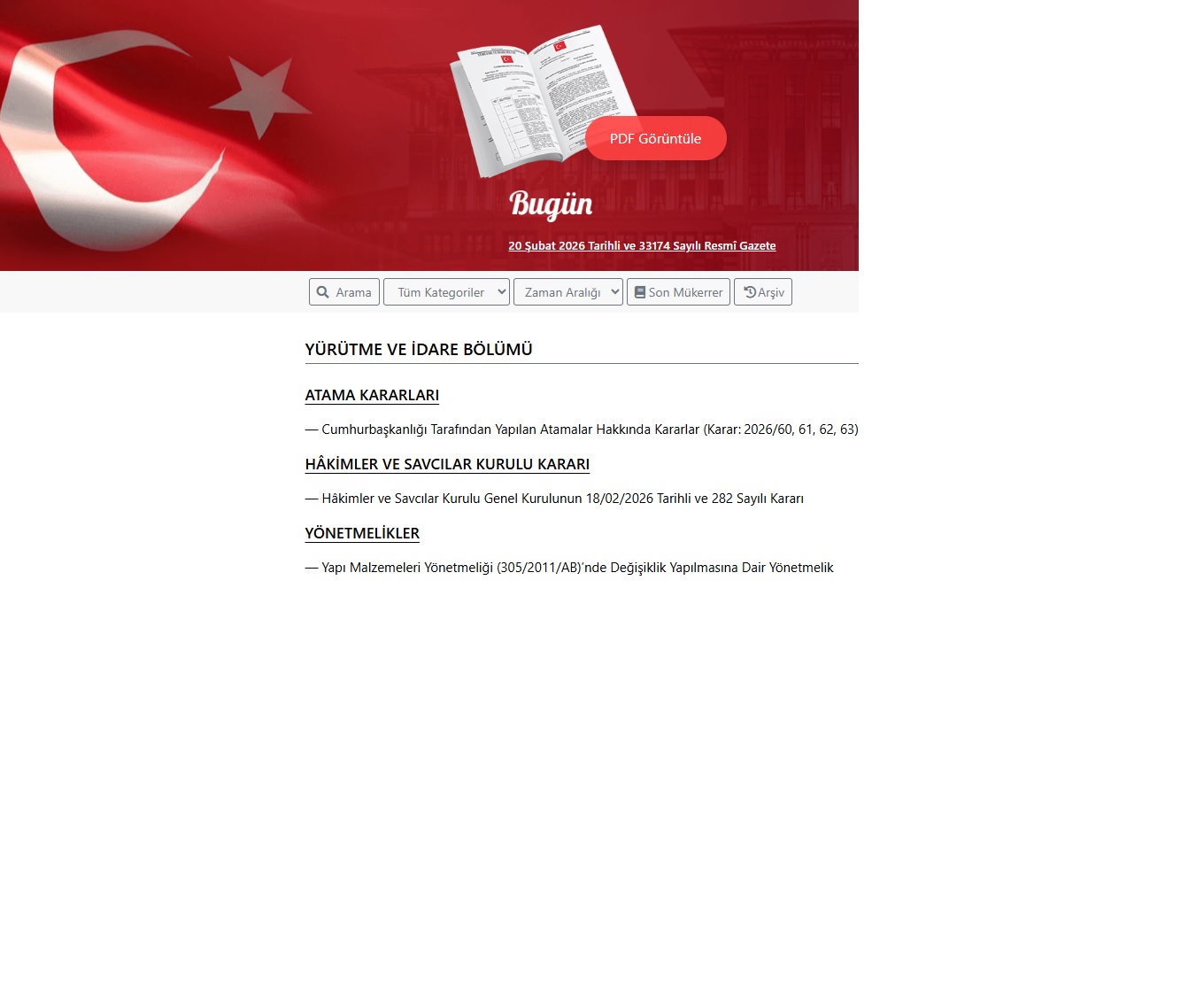 Mesleki Hizmetler Genel Müdürlüğü tarafından hazırlanan "Yapı Malzemeleri Yönetmeliği'nde Değişiklik Yapılmasına Dair Yönetmelik" 20 Şubat 2026 tarihli ve 33174 sayılı Resmi Gazete'de yayımlandı. Düzenlemeyle, yapı malzemesinin piyasaya arz edilmeden önce beyan edilmesi zorunlu performans kriterlerine, çevresel sürdürülebilirlik kriterleri de dahil edildi.