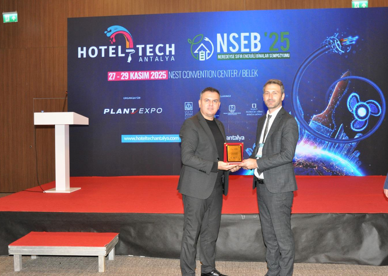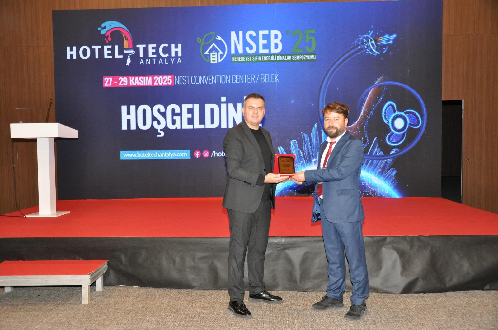 Ayrıca, Antalya’da “3. Otel Teknik Ekipman ve Malzemeleri İhtisas Fuarı” kapsamında, Elektrik, İnşaat, Makina Mühendisleri Odaları ile Mimarlar Odası Antalya Şubeleri iş birliğinde 28 Kasım 2025 tarihinde Antalya’da düzenlenen “Neredeyse Sıfır Enerjili Binalar (nSEB) Sempozyumu”na ise Enerji Verimliliği Daire Başkanlığımızdan Şube Müdürümüz Necip Ayas ve Elektrik-Elektronik Mühendisi Enes Doğan katıldı.
